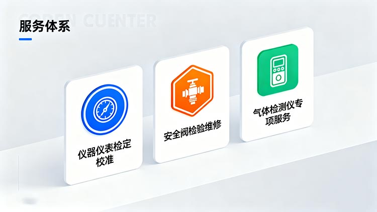 服务体系清晰聚焦:围绕公司核心业务重构内容架构,将仪器仪表检定校准、安全阀检验维修、气体检测仪专项服务等核心板块分类呈现,让您直观了解我们的技术实力与服务范围。